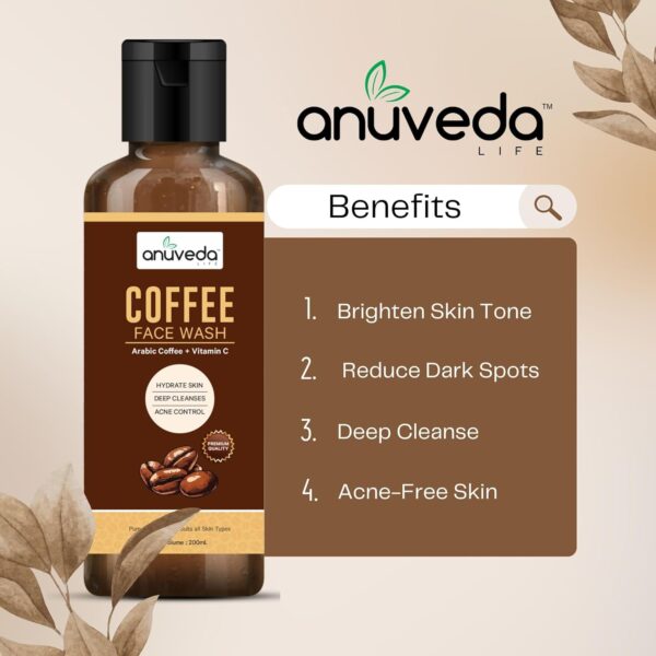 anuveda LIFE Natural Deep Cleansing Coffee Face Wash 200ml x 2 | Purifies Skin, Acne Control, Skin Energizing | Arabica Coffee
